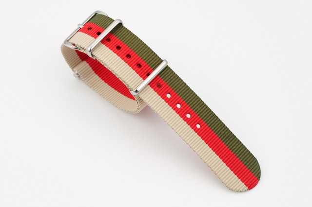 スウェーデン製 ナイロン NATOタイプ Khaki Green, Red and Beige カーキ緑×赤×ベージュ 20mm 22mm 時計ベルト リボンベルト