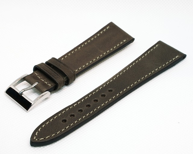 ベルキーLIC(リック)社製 時計ベルト オランダ製ビンテージレザー(牛革) Vintage (ヴィンテージ)18mm 20mm カーキ 牛革裏材 シルバー尾錠 Made in Belgium vin5ame