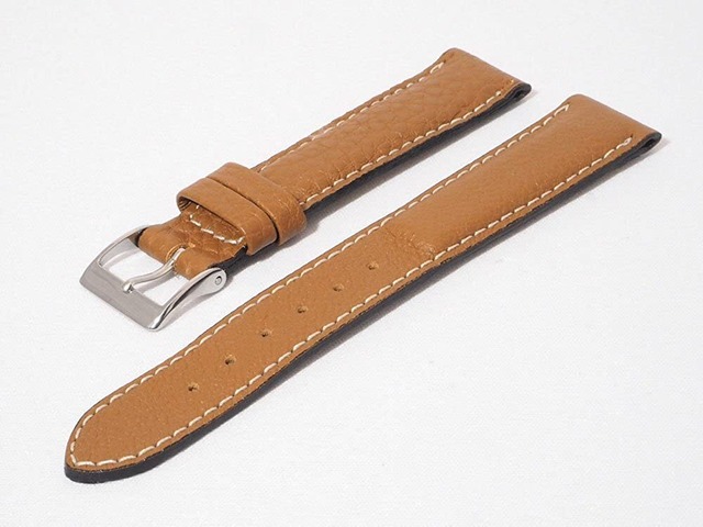 フルーコ Fluco 1952年創業以来、ドイツ・バイエルン地で時計ベルトを製造 ドイツ国内で生産 裏材には非アレルギー素材を使用 素材:牛革カーフ(シュランク・カーフ) 色:コニャック(生成ステッチ) 取付幅: 時計側18mm/尾錠側16mm 長さ:6時側120mm/12時側75mm 時計側20mm/尾錠側18mm 長さ:6時側110mm/12時側70mm 厚さ:約2.3mm~4.6mm