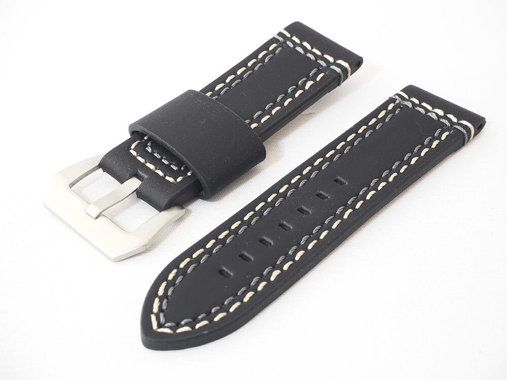 Banda(バンダ)社製時計ベルト Vintege Moda 牛革カーフ素材 ビンテージダブルステッチ時計バンド 24mm・26mm ブラック(黒) 尾錠シルバー ENZO-514-01