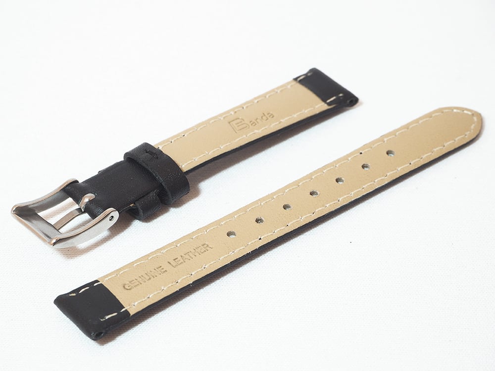 Banda(バンダ)社製時計ベルト Soft Leather 牛革カーフ素材スムーズレザー時計バンド 8mm 10mm・12mm・14mm・16mm ブラック 尾錠シルバー 336-11