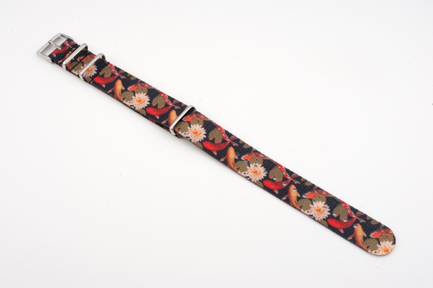 スウェーデン製 バリスティックナイロン グラフィック NATOタイプ KOI 鯉 黒赤オレンジ 18mm 20mm 22mm 時計ベルト リボンベルト