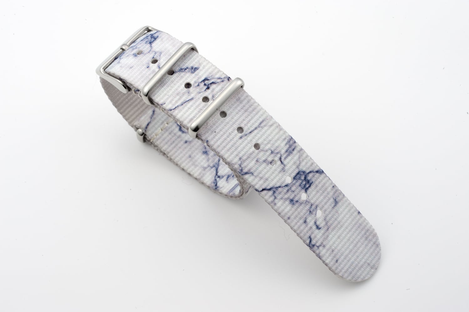 スウェーデン製 バリスティックナイロン グラフィック NATOタイプ MARBLE マーブル 白 黒 ホワイト ブラック 18mm 20mm 22mm 時計ベルト リボンベルト