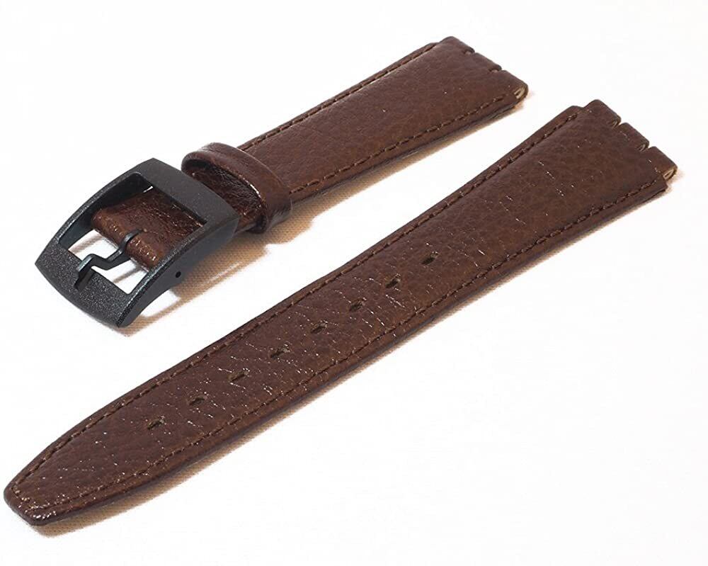 イギリス コンドル社製 SWATCH(スウォッチ) 用時計ベルト 取付部分17mm/ベルト幅20mm 牛革カーフ素材 バッファロー型押し ダークブラウン 尾錠色黒 時計バンド SC04.02