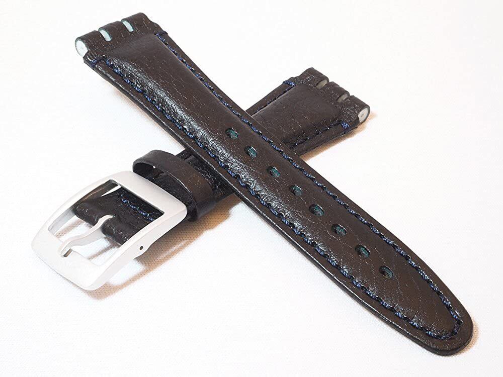 イギリス コンドル社製 SWATCH(スウォッチ) 用時計ベルト 取付部分19mm/ベルト幅22mm 牛革カーフ素材 バッファロー型押し プレーンタイプ ネイビー 尾錠色シルバー 時計バンド SC14.05
