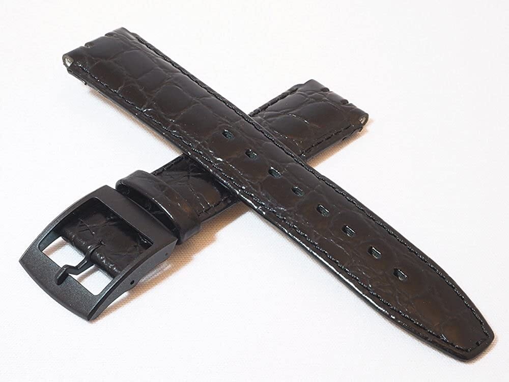 イギリス コンドル社製 SWATCH(スウォッチ) 用時計ベルト 取付部分17mm/ベルト幅20mm 牛革カーフ素材 クロコダイル型押し ブラック 尾錠色黒 時計バンド SC10.01