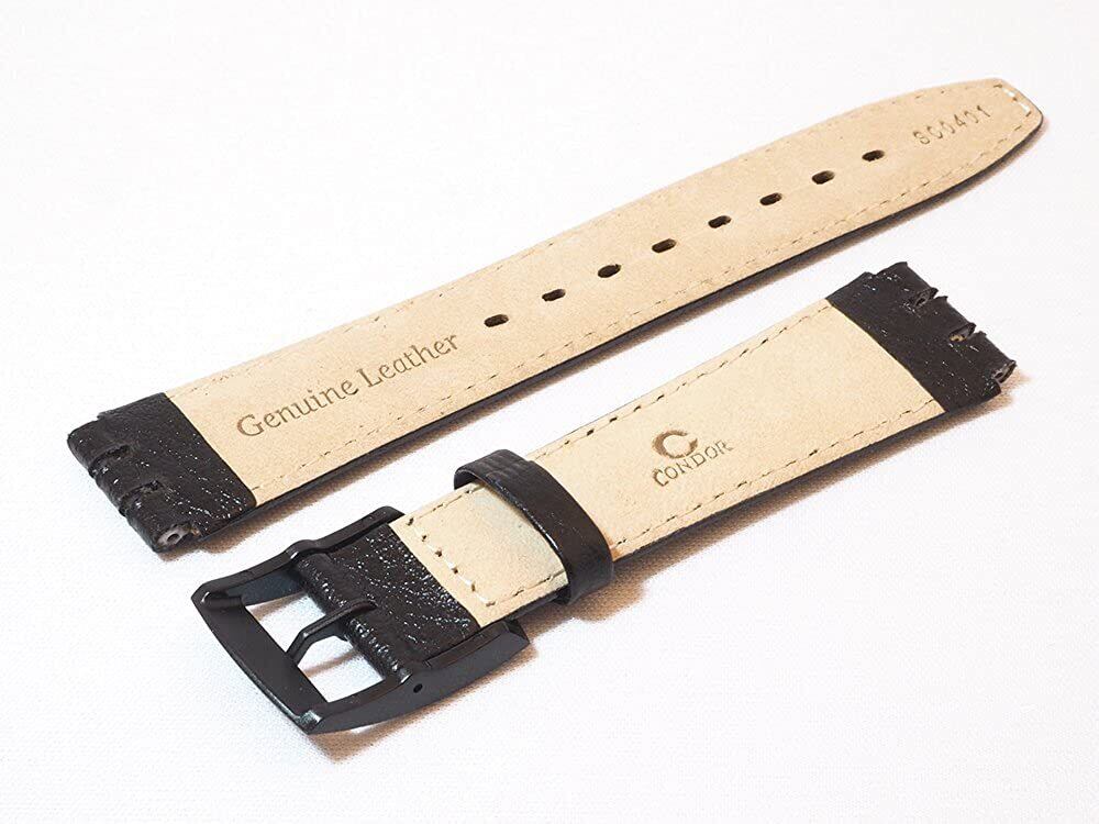 イギリス コンドル社製 SWATCH(スウォッチ) 用時計ベルト 取付部分17mm/ベルト幅20mm 牛革カーフ素材 バッファロー型押し ブラック 尾錠色黒 時計バンド SC04.01