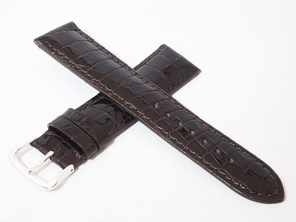 オリジナルストラップ クロコダイル 玉ふ ダークブラウン 濃い茶 艶あり シャイニー仕上げ 時計ベルト 18mm 19mm 20mm 21mm 22mm 日本製 職人仕立て