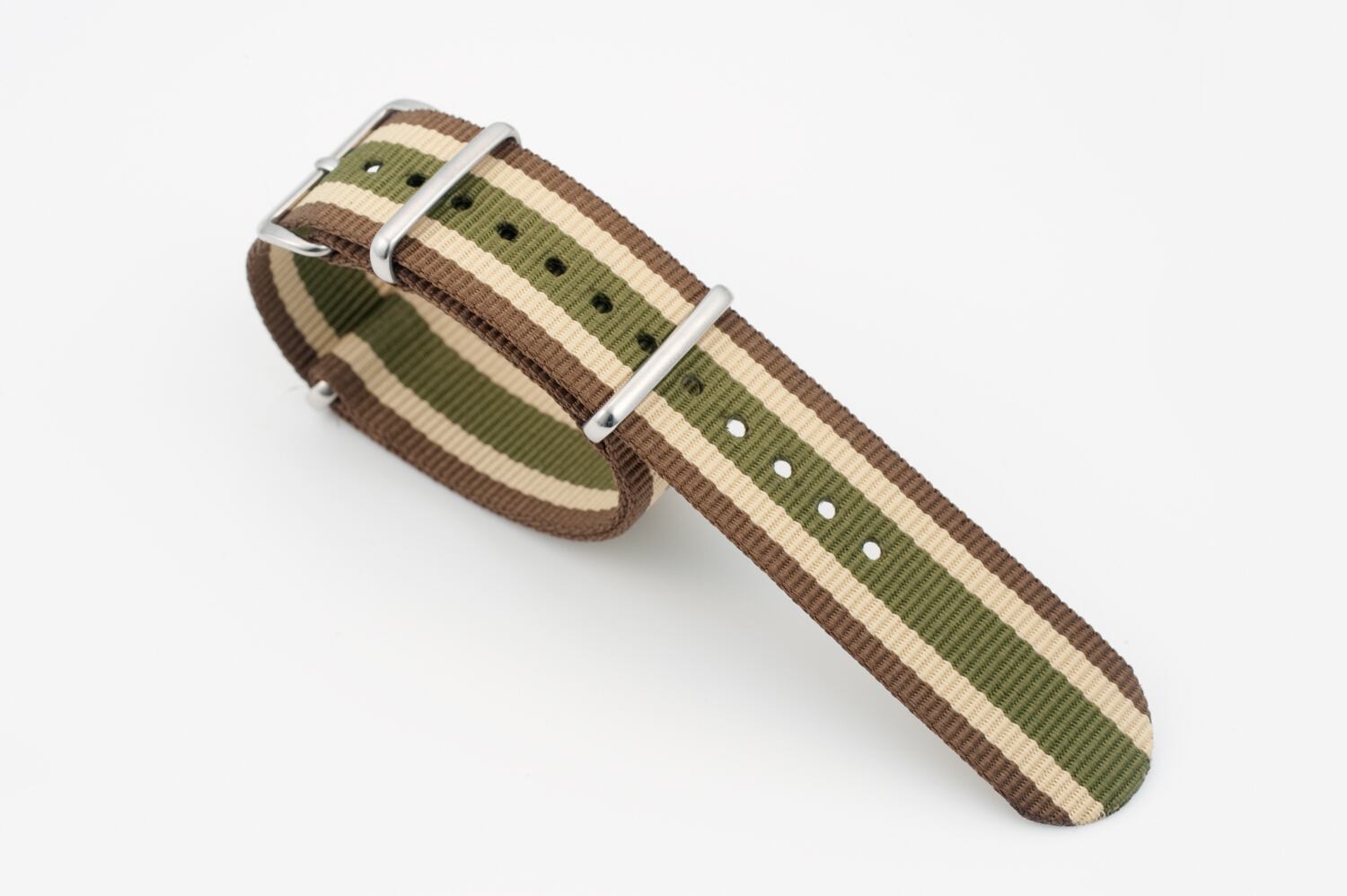 スウェーデン製 ナイロン NATOタイプ Brown Beige and Khaki Green ブラウン×ベージュ×カーキグリーン 20mm 22mm 時計ベルト リボンベルト