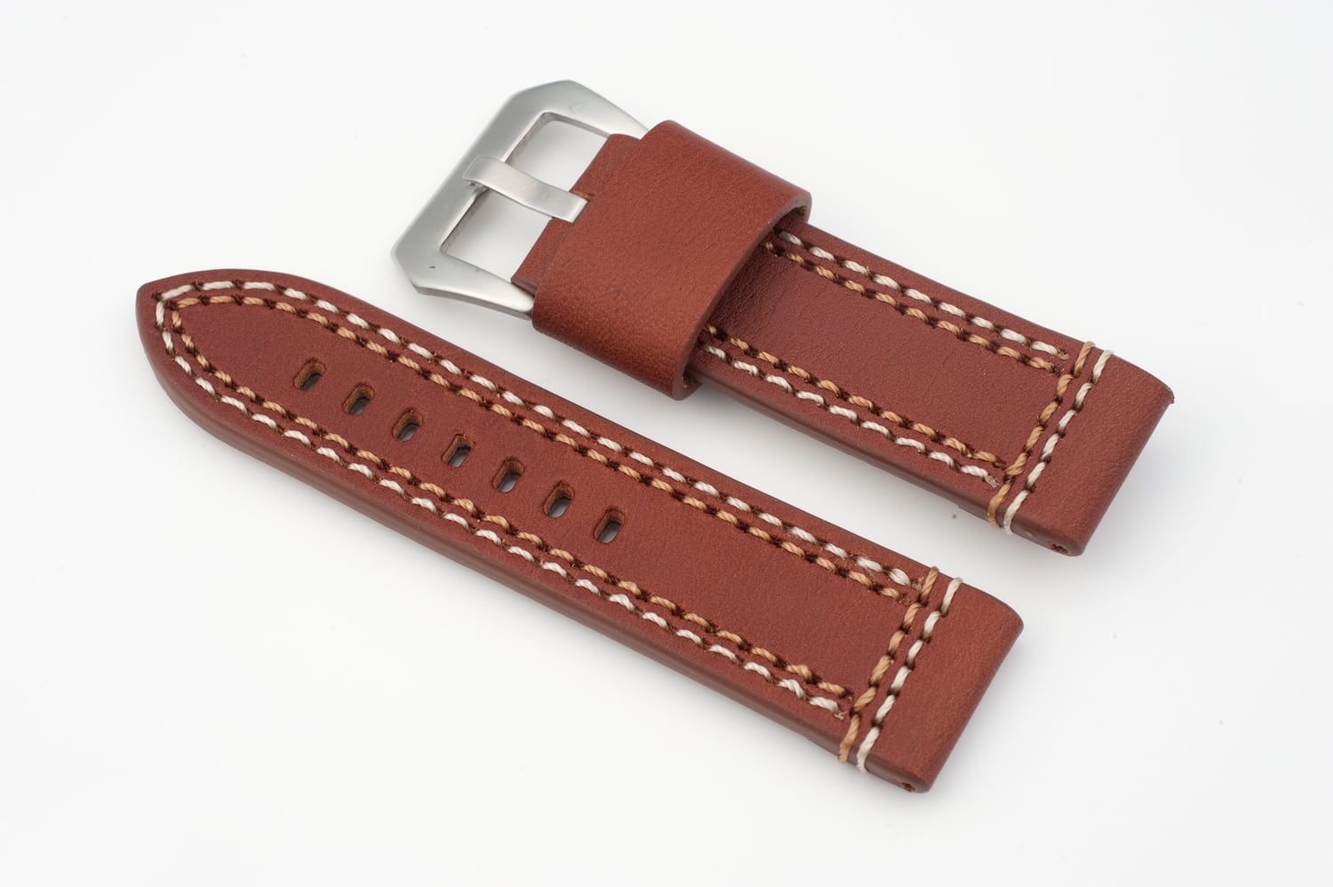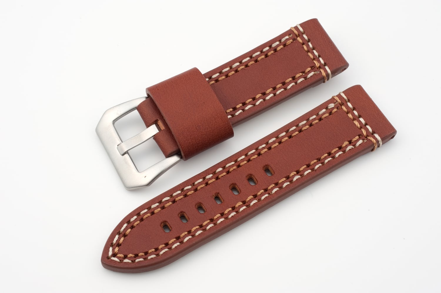 Banda(バンダ)社製 時計ベルト Vintege Moda 牛革カーフ素材 ビンテージ ダブルステッチ 時計バンド 24mm 26mm Rouille Cowboy Stripe 尾錠シルバー ENZO-508-04