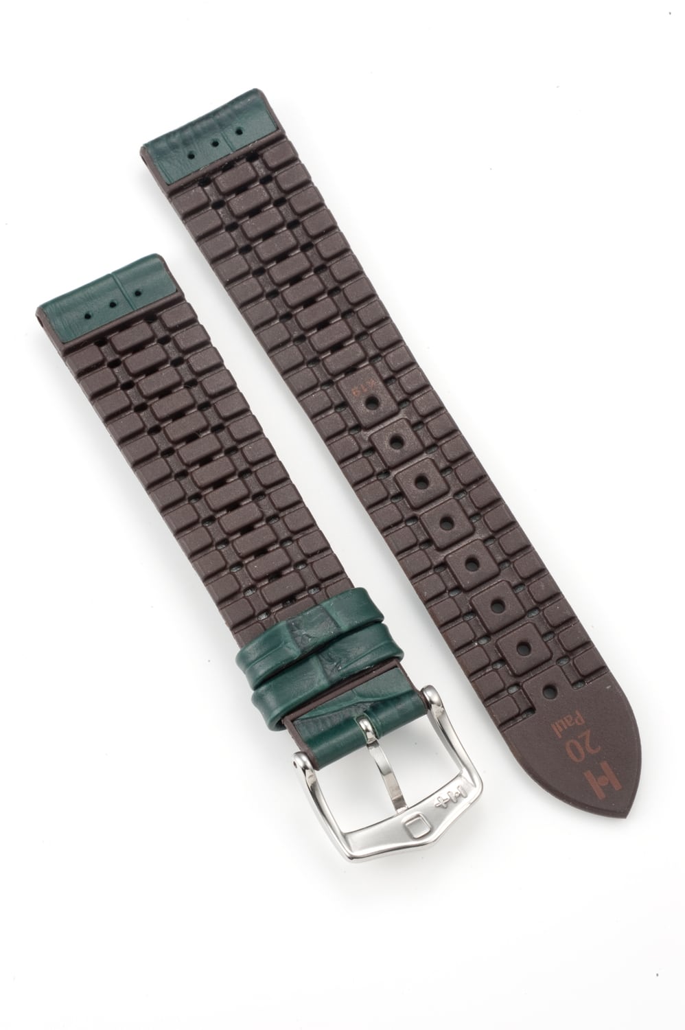 限定モデル HIRSCH ポール 20mm 22mm ヒルシュ パフォーマンスシリーズ 時計ベルト 表材 カーフ(防水加工)ダークグリーン 濃いめ緑 / 裏ラバー ダークブラウン 濃い茶(天然カウチック)シルバー尾錠 時計バンド