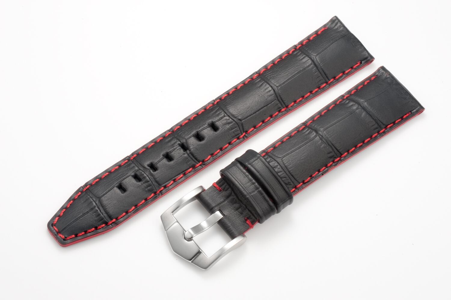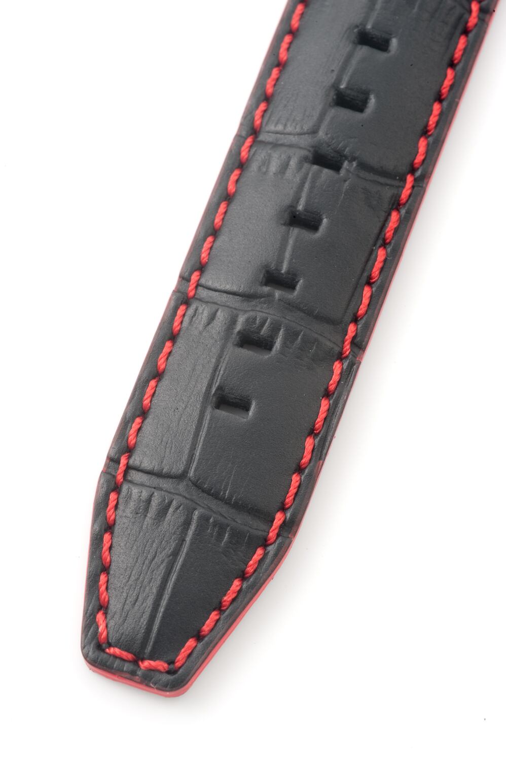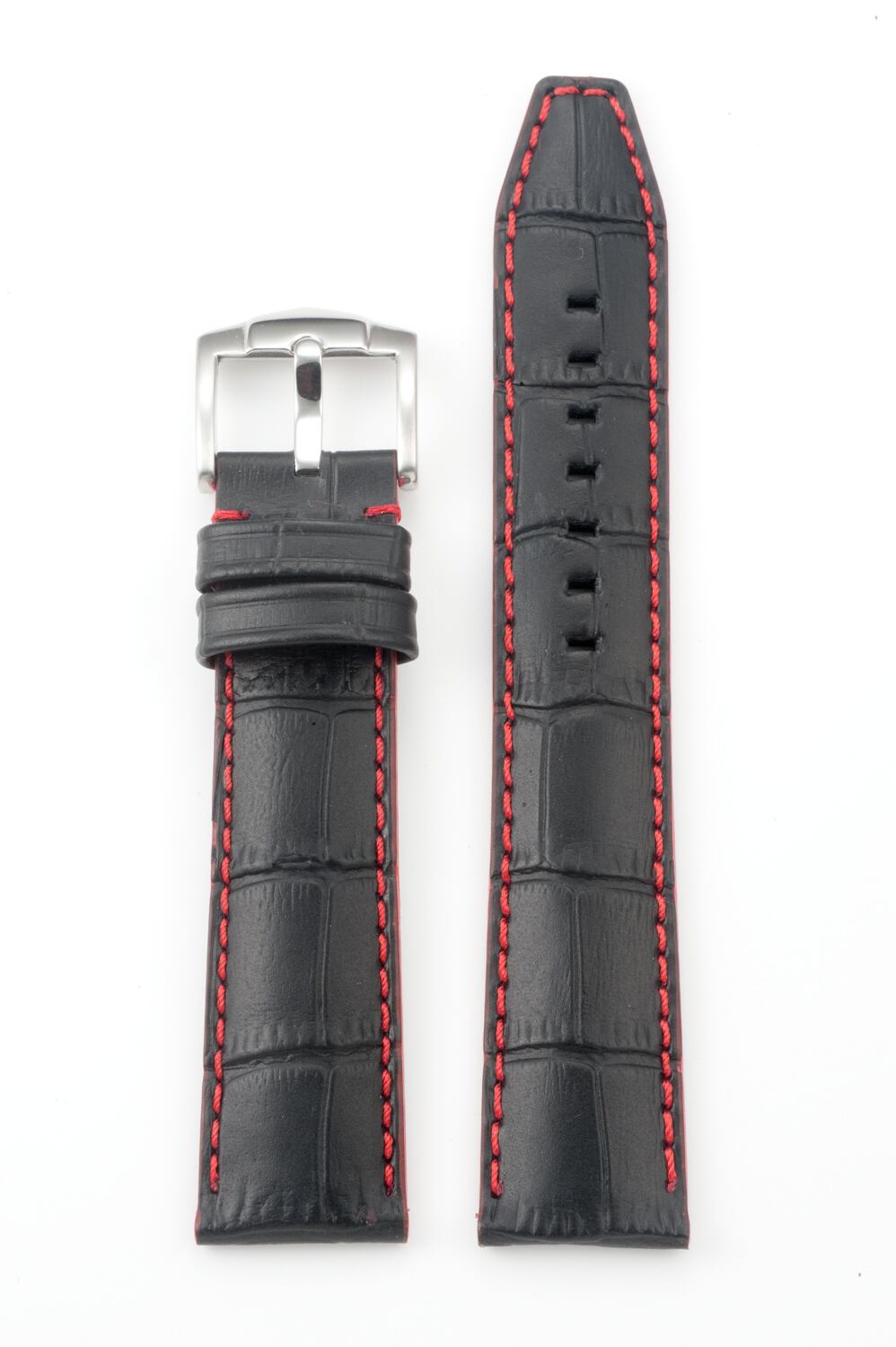 フランス ロシェ ROCHET社 時計ベルト 559.INDIANA インディアナ 牛革 カーフ型押し BLACK ブラック 黒 赤ステッチ 20mm 22mm 時計バンド