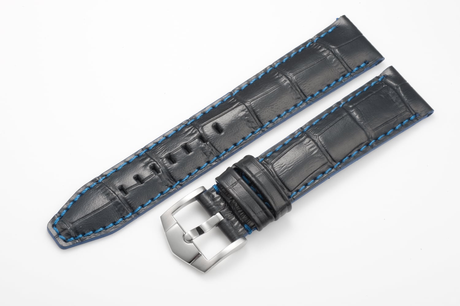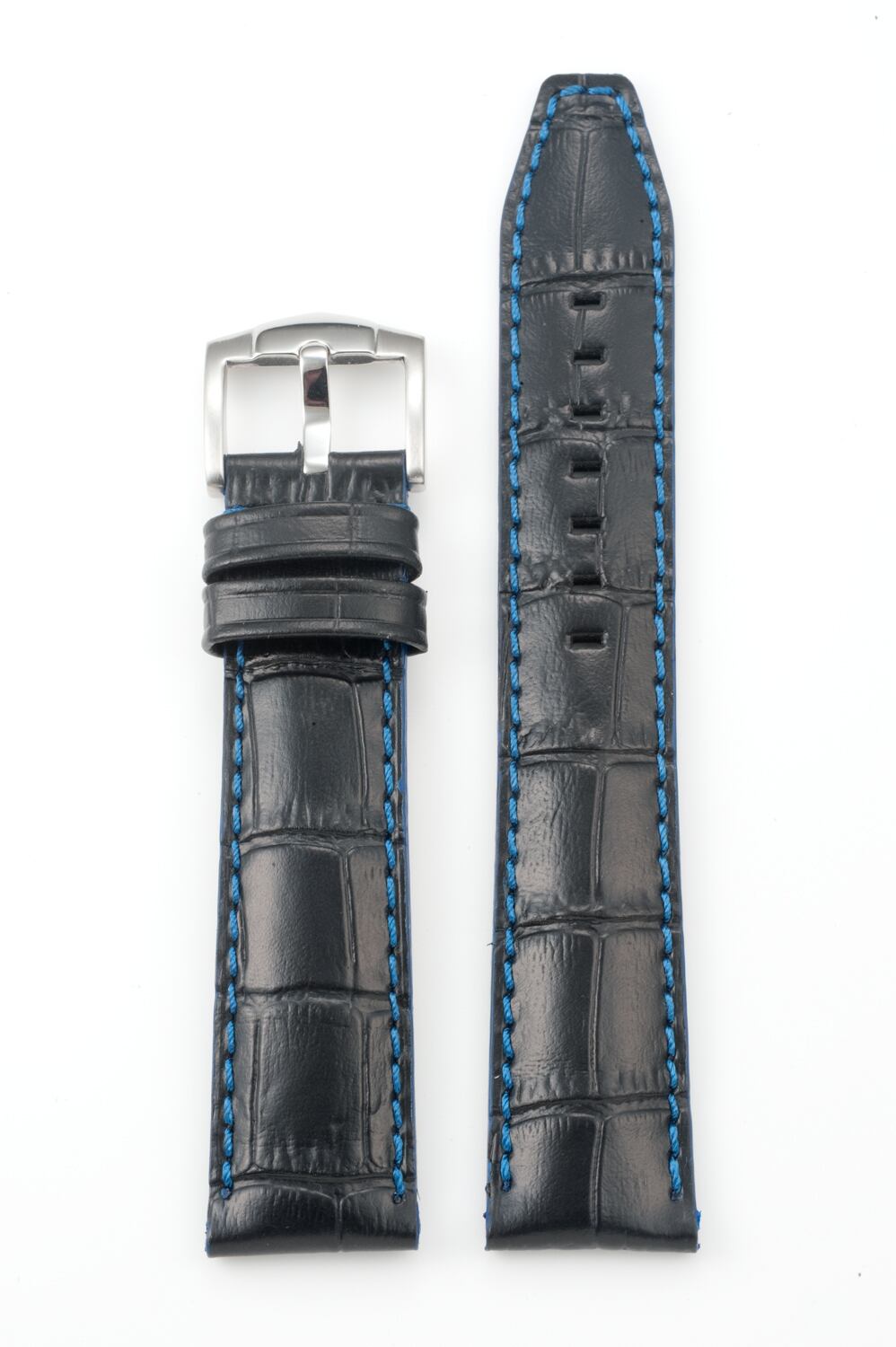 フランス ロシェ ROCHET社 時計ベルト 559.INDIANA インディアナ 牛革 カーフ型押し BLACK ブラック 黒 青ステッチ 20mm 22mm 時計バンド