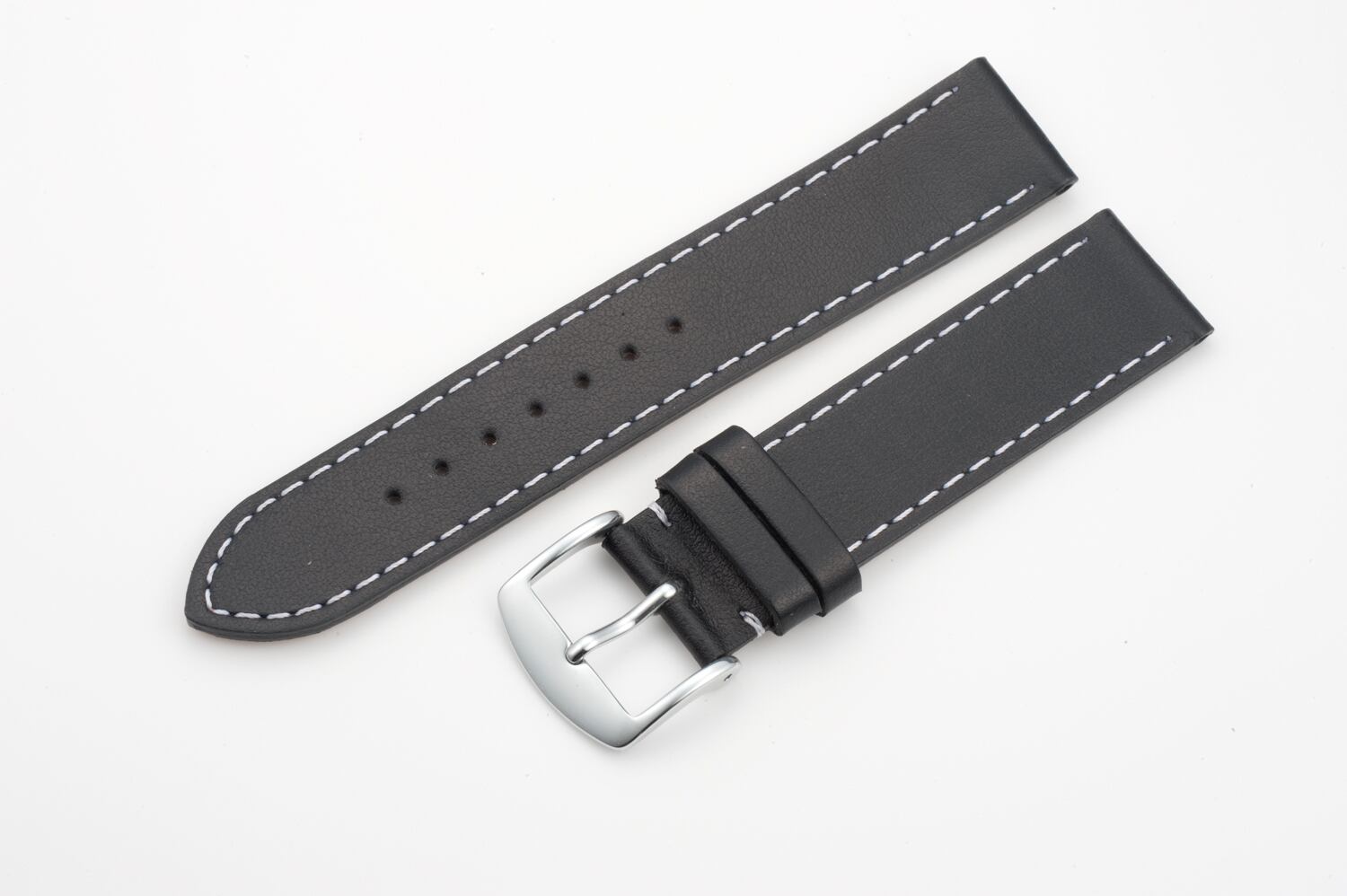 フランス ロシェ ROCHET社 時計ベルト 3021801XS02 MANHATTAN マンハッタン 牛革 カーフ(サテンカウハイド ・シボ) ブラック BLACK 黒 ステッチ白 裏材 ヌバック 18mm 20mm ストレートタイプ ショートサイズ 時計バンド