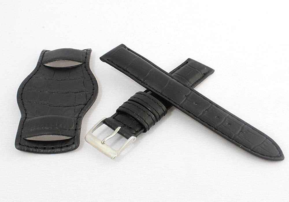 日本製 ミモザ社 牛革 カーフ型押し 18mm 20mm 時計バンド ブラック 黒 BUND ブンド プロテクター シルバー尾錠 CIR-A