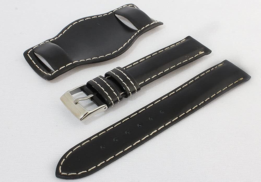 日本製 ミモザ社 牛革 カーフ 18mm 20mm 時計バンド ブラック 黒 ステッチ白 BUND ブンド プロテクター シルバー尾錠 CAR-AW